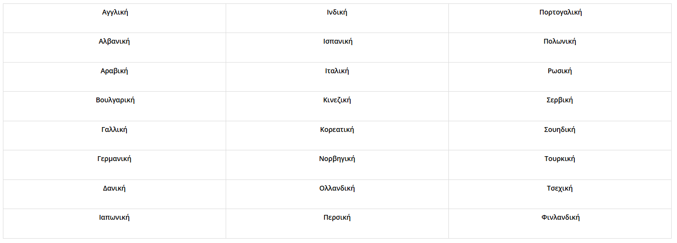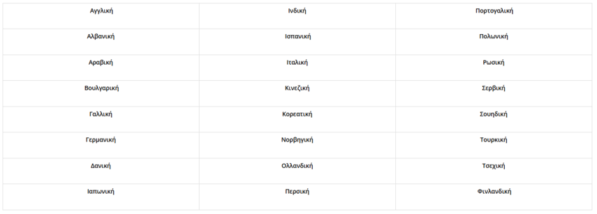 Στο Διδασκαλείο Ξένων Γλωσσών του Εθνικού και Καποδιστριακού Πανεπιστημίου Αθηνών για το έτος 2020-2021 θα διδαχθούν οι παρακάτω ξένες γλώσσες: